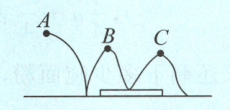 因为地球引力,当我们抛下一个物体时,物体都会坠向地面。如图,一个有弹性的橡皮小球从点A抛落到地面上会反弹至最高点B,从点B下落时恰好会落在一个高10厘米的石台上,再次反弹至最高点C,再落到地面上……经过测试发现:该球每次弹起的高度都是下落高度的$\frac{4}{5}$。如果点A比点C高34厘米,那么点C距离地面的高度是( )厘米。(5分)