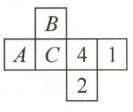 8 [解析:根据正方体展开图的特征,将题图折成正方体后,A与4相对,B与2相对,C与1相对,根据相对面两数之和是10,求得B = 10 - 2 = 8。]