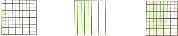 答案: $\frac{7}{100}$ 0.07 $\frac{5}{10}$ 0.5 $\frac{61}{100}$ 0.61