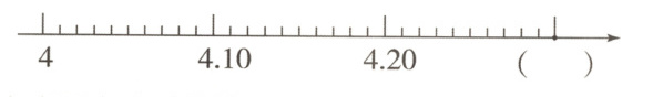 提示:直线上,1个大格表示0.10,1个小格表示0.01,所以小圆点表示4.30。4.08在4.10的左边2个小格处,4.25在4.20右边5个小格处。