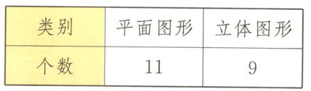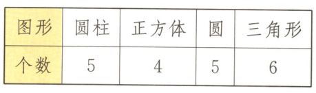 提示:根据分类的标准,分别数出每类图形的数量,填表即可。