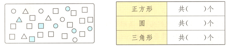 1.(常考题)先分类并统计各种图形的个数,再数一数、填一填。