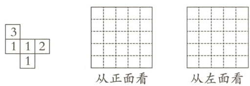 3.(重点题)左下图是从上面看由一些小正方体所搭立体图形的平面图形,方格中的数字表示该位置的小正方体的个数。请你在方格纸中分别画出这个几何体从正面和左面看到的图形。