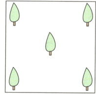 7. 在下面的正方形里再画1个正方形,正好把这5棵树分隔在5个图形中。