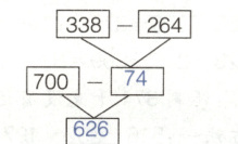 计算过程:338 - 264 = 74,700 - 74 = 626