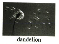Other plants use wind to spread their seeds. Dandelions are a good example of this. Dandelion seeds are so light that when wind blows, it carries dandelion seeds to new places. Maple(枫树) seeds also use wind. Their seeds are connected with long, thin leaves that look like wings. When the seed falls from the tree, its “wings” help it fly farther from the tree.