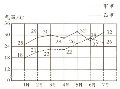 (3)乙市( )月( )日的最高气温相比前一天上升得最快。