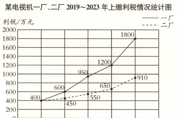(2)2021年两个厂一共上缴利税多少万元?2023年两个厂上缴利税相差多少万元?