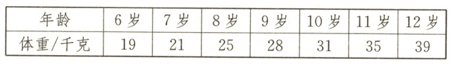 2. 丁丁同学在6~12岁的每年生日时都要测体重,下面就是他测量体重的统计表。