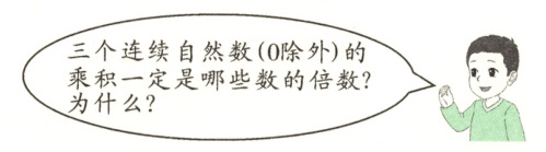 三个连续自然数(0除外)的乘积一定是这三个自然数的倍数。