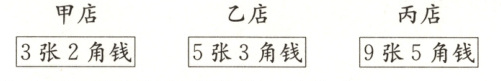 3. 俗话说“货比三家不吃亏”。爸爸到小商品市场去买一批卡通贴纸,他连续跑了三个店。