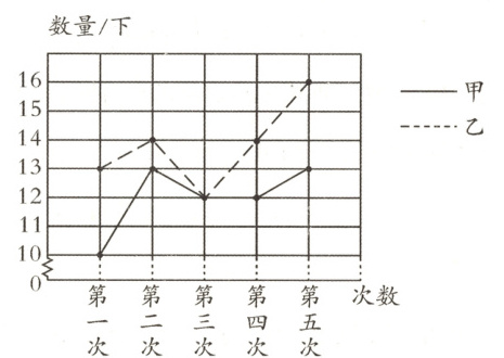 5. 甲、乙两人进行拍球比赛,他们分别拍了五次,连续拍球的下数如下图。