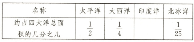 (2)大西洋、印度洋与北冰洋这三大洋的面积共占四大洋面积的几分之几?