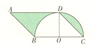 4. 如右下图,四边形ABCD是平行四边形,圆O的半径r = 3厘米,求涂色部分的面积。