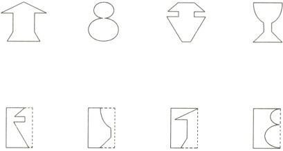 4. 下面的图形分别是从哪张纸上剪下来的?连一连。