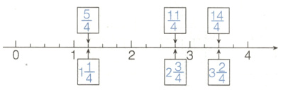 2. 在直线上面的□里填上假分数,在直线下面的□里填上带分数。