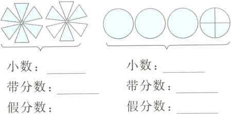 3. 用小数、带分数、假分数分别表示下面每个图中的阴影部分。