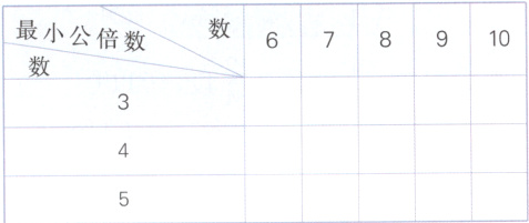 4. 找出每组数的最小公倍数,完成表格。
