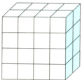 4. 下图的长方体是由棱长1厘米的小正方体摆成的。这个长方体的表面积是多少平方厘米?