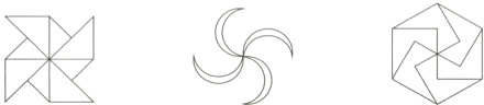 1. 下面的图形分别是由哪个图形旋转而成的?把它涂上你喜欢的颜色。