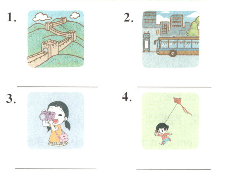 二 给下列图片选择正确的短语,并抄写在下面横线上。