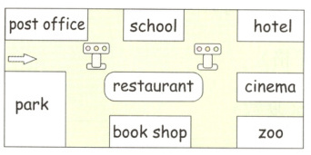 ( )2. Go straight. Turn right at the second traffic lights. You'll see the cinema on your left.