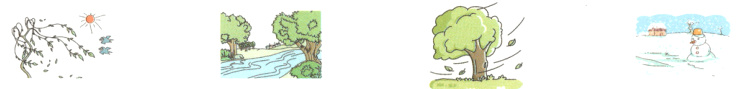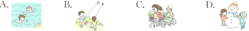 In spring, it’s warm. We can ride a bicycle in the park. In summer, it’s hot. We can go swimming. In autumn, it’s cool. We can fly a kite. In winter, it’s cold. We can make a snowman.