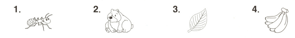 1. 涂黑色 2. 涂棕色 3. 涂绿色 4. 涂黄色