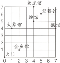 (2)老虎馆的位置可以用数对( )表示,蛇馆的位置可以用数对( )表示,它们在同一( )。