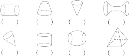 1. 下面图形哪些是圆柱,哪些是圆锥?是圆柱的在括号内画“〇”,是圆锥的在括号内画“△”。