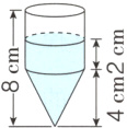 5. 如图,在一个由等底等高的圆锥和圆柱组成的玻璃容器中加入一些水,并盖上盖子。当把这个玻璃容器倒过来时,水面有多高?