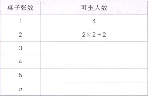 (1) 第2张桌子可坐6人,第5张桌子可坐( )人。