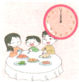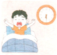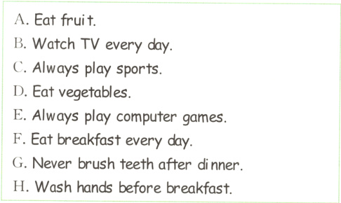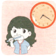 1. gets up 2. brushes her teeth 3. washes his face 4. has lunch 5. has Chinese class