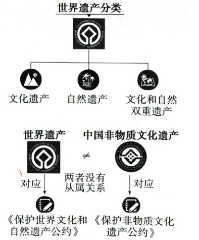 小兰对世界遗产与中国非物质文化遗产的关系比较疑惑,请你根据下图,用简明的语言为小兰进行讲解。