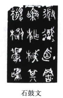 ②什么是石鼓文呢?就是刻在十块鼓形石上的文字,也是我国现存的最早的石刻文字。作为国宝,现存北京故宫博物院。石鼓上刻的都是四言诗,每面石鼓上一首,内容为歌颂国君游猎情况。其字体既不同于金文,又不同于小篆;其字形比金文更整齐,结构又近于小篆,显然是由金文向小篆过渡的一种字体;其书法字体多取长方形,体势整肃,端庄凝重,笔力稳健,在汉字发展史上有重要的研究价值,因而为历代学者所重视。