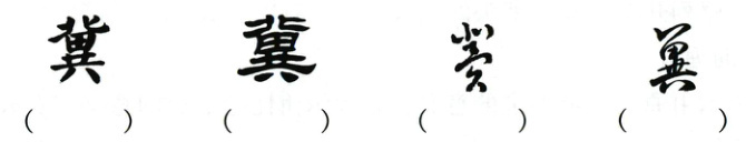 1. 下面是“冀”字隶书、草书、楷书、行书的不同写法,请你根据字体特点,在下面括号中填写相应的字体名称。