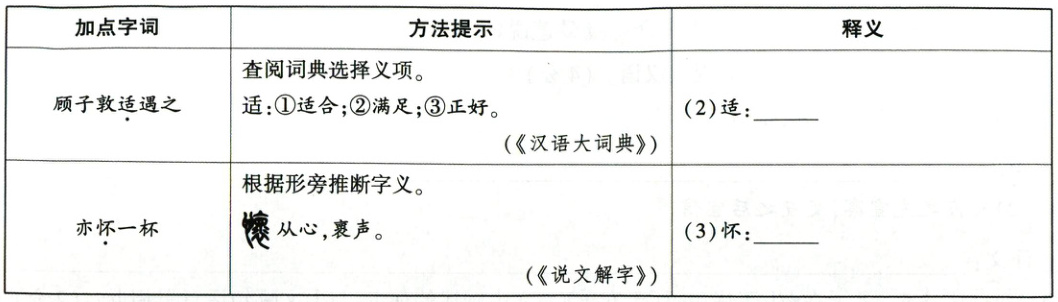 2.根据“方法提示”,解释下列加点字词。(3分)