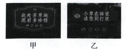(示例3)丙 运用对偶的修辞手法,句式整齐,提示人们要爱惜花草树木