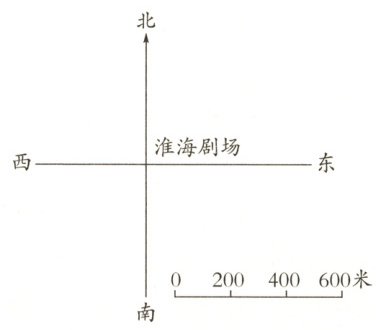 (2)实验中学在淮海剧场南偏东60°方向600米处。