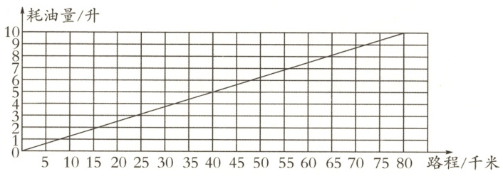 1. 下面的图像表示一辆汽车所行的路程和耗油量之间的关系。