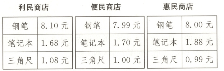 买钢笔去( )商店,买笔记本去( )商店,买三角尺去( )商店。