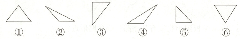 2. 分一分,把三角形的序号填在相应的括号里。