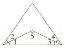 2. 如右下图,等边三角形中有一个等腰三角形,并且∠1=∠2,∠3=∠4,求∠5的度数。