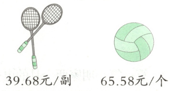 提示: 观察数的特点,可以先算出买一副乒乓球拍和一副羽毛球拍一共要花多少钱,再用50元去减。