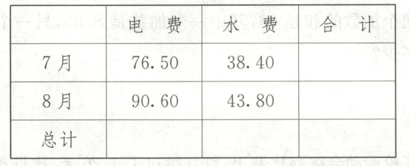 2. 算一算小明家两个月的电费和水费一共是多少钱。(单位:元)