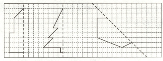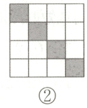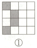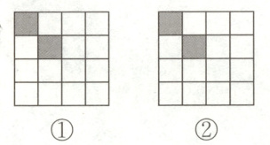 4. 在下图中再各涂两个小方格,使涂色小方格组成的图形是轴对称图形,并且满足:图①中由涂色小方格组成的图形只有1条对称轴;图②中由涂色小方格组成的图形有2条对称轴。