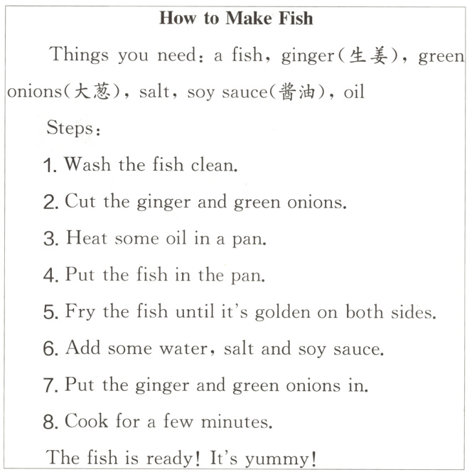 十三、 新语篇 菜谱 Qingqing想要学做一道菜给家人吃,于是她从网上搜索了一道菜谱。阅读菜谱,完成下列各题。(8分)