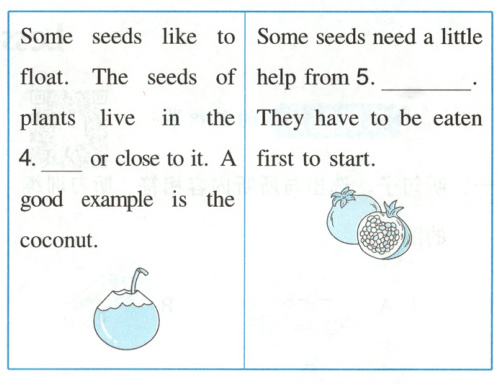 Trees can live for 1. __________ of years. They produce 2. __________ in the air. We can tell the age of a tree by growth 3. __________ in the wood. We plant trees to 4. __________ the environment.