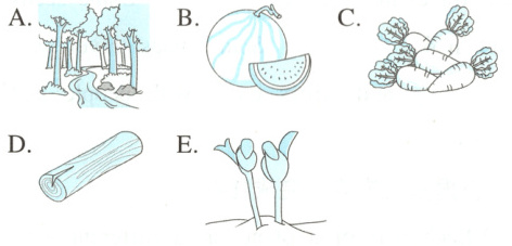 1. fruits 2. Peanuts 3. stems 4. wheat 5. wind