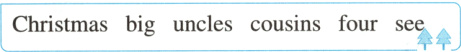 1. big 2. four 3. uncles 4. cousins 5. Christmas 6. see